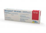 8. Приложите к месту инъекции стерильную марлевую повязку или стерильный тампон. Не трите при этом место инъекции, так как это может вызвать раздражение. Если это необходимо, наложите лейкопластырь. 9. Поместите использованный шприц и снятый ранее защитный колпачок в контейнер для отходов, сделанный из пластика или стекла, с крышкой. Утилизируйте использованные материалы, следя за тем, чтобы исключить случайный контакт с ними детей и других лиц. Во время курса терапии не следует делать инъекции в одно и то же место. Пожалуйста, меняйте место инъекции для каждой последующей инъекции (каждую неделю). Меры предосторожности при применении: Пациенты должны быть четко проинформированы о том, что препарат должен применяться не ежедневно, а один раз в неделю. За проходящими терапию Методжектом® пациентами должно осуществляться надлежащее наблюдение с тем, чтобы признаки возможного токсического воздействия и побочных реакций выявлялись и оценивались без промедления. Методжект® должен назначаться только врачом-специалистом, имеющим достаточные знания и опыт проведения антиметаболической терапии. Ввиду возможного развития тяжелых, или даже фатальных побочных реакций, пациенты должны быть полностью проинформированы врачом о возможных рисках и рекомендуемых мерах безопасности. Применение препарата у детей до 3 лет не рекомендовано ввиду недостаточности данных об эффективности и безопасности лечения этой группы пациентов. Рекомендуемые обследования и меры безопасности Перед началом или возобновлением лечения метотрексатом должен быть выполнен развернутый клинический анализ крови с подсчетом форменных элементов крови, включая определение числа тромбоцитов; биохимический анализ крови с определением активности ферментов печени, концентрации билирубина, сывороточного альбумина; рентгенологическое обследование грудной клетки, исследование функции почек. При необходимости - диагностические мероприятия для оценки активности туберкулезной инфекции и вирусного гепатита. Во время лечения (не реже раза в месяц в первые шесть месяцев лечения, далее - не реже одного раза в три месяца) необходимо проводить описываемые ниже исследования. В случае повышения дозы метотрексата частота обследований должна быть увеличена. 1. Обследование слизистой полости рта и глотки для оценки состояния слизистой (стоматит, фарингит). 2. Развернутый клинический анализ крови с подсчетом форменных элементов крови, включая определение числа тромбоцитов. Подавление гемопоэза, вызванное метотрексатом, может происходить внезапно, в том числе при применении препарата в малых дозах. В любом случае значительного снижения числа лейкоцитов или тромбоцитов необходимо немедленно прервать лечение метотрексатом и провести адекватную поддерживающую терапию. Пациентам должно быть рекомендовано сообщать о любых признаках и симптомах возможных инфекций. Пациенты, одновременно применяющие препараты, угнетающие кроветворение (например, лефлуномид), должны тщательно наблюдаться с контролем показателей (форменных элементов) крови, включая число тромбоцитов. 3. Исследование функции печени: особое внимание должно быть уделено выявлению возможного токсического влияния на печень. Лечение не должно начинаться, или должно быть прервано, при обнаружении в ходе п