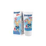 Biorepair - инновационная зубная паста, восстанавливающая и укрепляющая эмаль. Паста не содержит фтора и может применяться с любого возраста. Biorepair действует за счет активного вещества MicroRepair - это микрокристаллы медицинского гидроксиапатита (цинк-замещенный-карбонат-гидроксиапатит). Он аналогичен естественному гидроксиапатиту, который входит в состав костей и зубов (96% зубной эмали). Кристаллы MicroRepair соединяются с эмалью и восстанавливают ее структуру, усиливая естественную защиту зубов от кариеса. Защищает зубы от кариеса, делая их более сильными и здоровыми. Единственная зубная паста для детей, не только укрепляющая, но и восстанавливающая эмаль зубов с помощью частиц microRepair. Защищает зубы ребенка. Стимулирует выработку слюны и усиливает ее защитные функции. Препятствует возникновению кариеса. Натуральный экстракт земляники оказывает тонизирующий эффект и питает десны. Экстракт земляники устраняет воспаление десен, облегчая самочувствие ребенка при прорезывании зубов. Паста не содержит агрессивных абразивов, налет удаляется с помощью мягких и безопасных компонентов (RDA 14,7) Уровень абразивности (RDA) - 14,7. Крайне низкоабразивная. Обеспечивает надежную антибактериальную защиту полости рта. Гипоаллергенна и безопасна при проглатывании. Результат: нанокристаллы способны проникать в самые маленькие трещинки и микроповреждения зубов и встраиваться в структуру эмали, тем самым эффективно восстанавливая и укрепляя детские зубы и предотвращая кариес. Рекомендовано для детей, у которых наблюдается: Флюороз, гипоплазия эмали, повреждение эмали, кариес, прозрачность эмали, предрасположенность к повышенному образованию налета, сухость во рту. Формула пасты максимально безопасна. Специальные особенности: Не содержит фтор, SLS (лаурилсульфат натрия), парабены, хлоргексидин, спирт, сахар, диоксид титана и натрия, абразивный кремний Преимущества пасты BioRepair Kids Паста абсолютно безопасна для детского организма. Содержит микрочастицы microRapeir. Эффективна в период ношения брекетов. В состав пасты входит натуральный экстракт земляники, который питает десны и обладает тонизирующим эффектом.