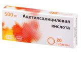 Активное вещество: ацетилсалициловая кислота - 500 мг,