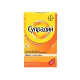 Определяются комплексом входящих в состав витаминов и минералов. Витамин А необходим для нормального роста, участвует в формировании и поддержании структуры и функции костей, зубов, кожи; участвует в синтезе зрительного пигмента. Витамин В1 нормализует деятельность сердца и способствует нормальному функционированию нервной системы. Витамин В2 способствует процессам регенерации тканей, в том числе, клеток кожи. Витамин В6 способствует поддержанию структуры и функции костей, зубов, десен, оказывает влияние на эритропоэз, способствует нормальному функционированию нервной системы. Витамин В12 участвует в эритропоэзе, способствует нормальному функционированию нервной системы. Витамин С участвует в формировании и поддержании структуры и функции костей, зубов и десен; укрепляет стенки капилляров. Витамин D3 регулирует обмен фосфора и кальция в организме, содействуя всасыванию этих веществ кишечником, своевременному отложению их в костях. Витамин Е обеспечивает нормальное функционирование эритроцитов, предохраняет от повреждения клеточные мембраны. Биотин принимает участие в обменных процессах, способствует усвоению белка. Пантотеновая кислота участвует в процессах метаболизма жиров, белков и углеводов. Фолиевая кислота участвует в эритропоэзе. Никотинамид принимает участие в окислительно-восстановительных процессах, обеспечивает перенос водорода и фосфата. Кальций участвует в формировании костей и зубов, способствует нормальной свертываемости крови. Магний участвует в формировании мышечной и костной тканей, а также принимает участие в синтезе белка. Железо участвует в эритропоэзе; является важной составной частью гемоглобина, который обеспечивает транспорт кислорода в ткани. Фосфор, наряду с кальцием, участвует в формировании костей и зубов, а также участвует в процессах энергетического обмена. Марганец содействует правильной минерализации костей. Медь необходима для нормальной функции эритроцитов и обмена железа. Цинк входит в состав около 70 ферментов, участвующих в синтезе и метаболизме гормонов (в основном, глюкокортикостероидов), а также делении и взаимодействии иммунокомпетентных клеток. Молибден входит в состав ферментов и коферментов, участвующих во многих окислительно-восстановительных реакциях в организме. СУПРАДИН® содержит 12 витаминов в сочетании с минералами и редкими элементами, являющихся важными факторами метаболических процессов. Витамины необходимы для метаболизма углеводов, образования запасов энергии, метаболизма липидов, нуклеиновых кислот и белков, а также для синтеза коллагена, нейромедиаторов и т.д. Помимо участия в основных метаболических реакциях, витамины принимают участие в регуляции и координации метаболических процессов. Витамины необходимы для роста костей, заживления ран, для поддержания нормального состояния сосудов, микросомального метаболизма лекарств и детоксикации, иммунного статуса, для развития и дифференциации тканей и т.д. За исключением известных последствий острой недостаточности витаминов, растущий организм проявляет определенную потребность в витаминах, что позволяет предупреждать заболевания и поддерживать умственное и физическое состояние на высоком уровне. Недостаток витаминов наблюдается в следующих случаях: - при увеличенной потребности