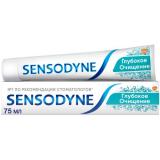 Зубная паста Sensodyne разработана специально для избавления от повышенной чувствительности зубов. Оголение дентина может быть связано с повышенным стиранием эмали или опущением (рецессией) десны, что может приводить к болезненной чувствительности зубов, например, при приёме горячей и холодной пищи или напитков. Зубная паста Sensodyпе Глубокое Очищение, проникая внутрь зуба, действует на нервные окончания, уменьшая болевые ощущения, и обеспечивает защиту от повышенной чувствительности зубов на 24 часа.Показания к применению