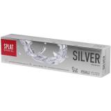 Бренд SPLAT (Сплат) Линия Special - серия средств с уникальными компонентами. SILVER - ДЛЯ ЗАЩИТЫ ОТ БАКТЕРИЙ Освежающая зубная паста-гель SPLAT Special Silver разработана специально для защиты от бактерий, гелевой консистенции, с интенсивным ароматом и вкусом мяты. ДЛИТЕЛЬНАЯ СВЕЖЕСТЬ ДЫХАНИЯ Серебро в активной форме, глюконат цинка, экстракт периллы и эфирное масло перечной мяты ЗАБОТА О ДЕСНАХ Экстракт ратании и антибактериальный компонент Bisabolol УКРЕПЛЕНИЕ И ОСВЕТЛЕНИЕ ЭМАЛИ Гидроксиапатит, обогащенный минералами кальция, магния, цинка, и полидон 98,6% NATURAL Серебро - обладает сильным антибактериальным эффектом Глюконат цинка - блокирует жизнедеятельность бактерий и обеспечивает длительную свежесть дыхания. Гидроксиапатит, обогащенный минералами кальция, магния и цинка - реминерализующий компонент, обогащенный ионами магния и цинка для антибактериального и противовоспалительного действия Максимальное освежение дыхания достигается благодаря синергии трех эффективных компонентов - серебра, цинка и мяты. В 90 % случаев причиной неприятного запаха являются летучие соединения серы - Сероводород, Метилмеркаптан, Диметилсульфид. Цинк, обладая химическим сродством к сере, связывается с ней, образуя нелетучие соединения, которые не имеют соответствующего запаха. Однако причиной неприятного запаха также является размножение бактерий в полости рта и серебро в активной форме обладает антибактериальным эффектом. Эфирное масло мяты содержит ментол, а TRM8 - термочувствительный белок в ротовой полости, который меняет свою форму при взаимодействии с ментолом. Изменение его формы приводит к приятному ощущению прохлады и свежести. Таким образом, цинк устраняет причину неприятного запаха, серебро обладает антибактериальным эффектом, препятствуя размножению бактерий, а мята придает ощущение свежести. Специальные особенности: не содержит SLES, PEG, парабены, триклозан, хлоргексидин, сахарин, синтетические красители и ароматизаторы, фтор