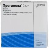 Прогинова содержит эстроген - эстрадиола валерат, который в организме человека превращается в естественный 17&beta,-эстрадиол. На фоне приема Прогиновы не происходит подавления овуляции, и практически не изменяется выработка гормонов в самом организме.
