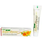 Боро Фреш (Boro Fresh) КАЛЕНДУЛА - Крем (не липкий), белый с оттенком, с приятным запахом. Специальные особенности: НЕ СОДЕРЖИТ: парабенов, силиконов, SLS, SLES, этилового спирта, фталатов и борной кислоты. С натуральными компонентами (Более чем на 95 % состоит из ингредиентов натурального происхождения (натуральные минеральные вещества, масла, травы, продукты молочного происхождения и ингредиенты, полученные путем обработки сырья растительного происхождения). Остальные 5% ингредиентов позволяют сохранить полезные свойства продукта до конца срока годности. Уникальный Аюрведический антисептический крем для быстрого заживления царапин, фурункулов, ран, небольших ожогов, язв, трещин, сыпи, зуда и небольших раздражений кожи. Также подходит для сухой и нормавльной кожи. Идеальный крем для ежедневного использования. Ежедневное использование крема «Боро Фреш» защищает кожу от вредного воздействия внешней среды, предотвращает тусклость и вялость кожи, смягчает ее, восстанавливает упругость и молодость кожи. Крем с добавлением экстракта календулы. Аромат календулы успокаивает душу и сердце.