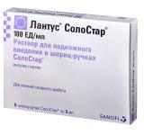 ЛАНТУС СОЛО СТАР р-р д/инъекц. п/к 100 ЕД/мл шпр.- ручка 3 мл №5
