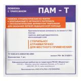 повязка «ПАМ-Т» выпускается в виде двухслойной повязки, состоящей из лечебного и впитывающего слоя высокой поглотительной способности, в стерильной упаковке размером 10х10 см. Стерилизация гамма-облучением в дозе 25кГрУсловия отпуска из аптек