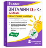 ВИТАМИН Д3+К2 ЭВАЛАР табл. жеват. 1200 МЕ №60