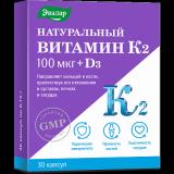 НАТУРАЛЬНЫЙ ВИТАМИН К2 (100 мкг)+Д3 ЭВАЛАР капс. №30