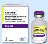 У пациентов - выходцев из стран Азии данный показатель составил 1%. Иммуногенность Возможно развитие иммунного ответа на трастузумаб эмтанзин. При применении препарата Кадсила у 5.3% пациентов обнаруживались антитела к трустузумабу эмтанзину в одной и более временных т очках после введения препарата. Клиническая значимость образования антител к трастузумабу эмтанзину не установлена.
