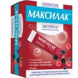 Это синбиотический** комплекс в форме порошка со вкусом лесных ягод, который растворяется на языке и не требует запивания водой. В состав Синбиотика Максилак® Экспресс входят живые лакто-, бифидобактерии и молочнокислые микроорганизмы, а также пребиотик - фруктоолигосахариды, способствующие более быстрой адаптации и стимулирующие рост и/или повышение биологической активности нормальной микрофлоры кишечника. Кишечная микрофлора выполняет множество различных функций: участвует в пищеварении, обменных процессах, обезвреживании болезнетворных бактерий и поддержании иммунитета, синтезе ряда витаминов и других полезных веществ, необходимых для поддержания здоровья желудочно-кишечного тракта и всего организма. В норме полезные бактерии составляют более 98 % микрофлоры и за счет своей жизнедеятельности сдерживают рост условно-патогенных микроорганизмов. Однако в определенных ситуациях часть полезных бактерий погибает, причиной гибели полезных микроорганизмов могут быть инфекционные заболевания, болезни желудочно-кишечного тракта (ЖКТ), неправильное питание, стресс, связанный, например, с изменением географических условий, характера питания, прием ряда лекарственных препаратов (в первую очередь антибиотиков). Это нарушает равновесие и может привести к появлению ряда неприятных проявлений, таких как диарея, запор, чередование запора и диареи, метеоризм, вздутие живота и др. Кроме этого, нарушение равновесия кишечной микрофлоры является одним из факторов, ведущих к развитию повышенной чувствительности к различным пищевым продуктам или аллергенам. Синбиотик Максилак® Экспресс обладает приятным ягодным вкусом, а входящие в его состав пробиотики поддержат баланс Вашей микрофлоры! Пробиотики в составе Синбиотика Максилак® Экспресс способствуют подавлению роста различных видов болезнетворных бактерий, восстанавливая равновесие кишечной микрофлоры, и за счет этого помогают нормализовывать обменные процессы, поддерживать иммунитет и способствуют повышению сопротивляемости организма простудным и инфекционным заболеваниям