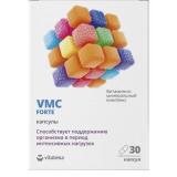 Витаминно-минеральный комплекс VMC FORTE способствует поддержанию организма в период интенсивных нагрузок и может обеспечить: усиление выносливости и работоспособности; восполнение энергии; улучшение метаболических процессов; повышение иммунитета. Усиленный состав комплекса, сбалансированный с учетом суточной потребности, содержит витамины, минералы и другие микронутриенты в биодоступной форме, и может восполнить их дефицит при физических и умственных нагрузках. Рекомендуется в качестве биологически активной добавки к пище.