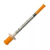 Шприц инъекционный применяют для инъекций инсулина -Стерильный. Стерильно, апирогенно, нетоксично, однократного применения. -Одноразовый Шприц инсулиновый U-100 с интегрированной иглой состоит из трех компонентов: цилиндр, поршень и манжета. Каждый отдельный шприц после вскрытия индивидуальной упаковки остается стерильным внутри, чему способствуют колпачки на поршне и на игле имеющие контроль вскрытия (небольшая пайка - печать) Отсутствие мертвого пространства гарантирует введение полной дозы без потери лекарства.Показания к применению