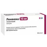 Капсулы размером №4, с крышечкой красно-оранжевого цвета и корпусом желтого цвета, с нанесенными черными чернилами знаком "Є" на крышечке и "LENV 10 mg" на корпусе, содержащие гранулы белого или почти белого цвета.