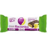Патока, банан сушенный кусочки, глазурь кондитерская(лауриновый заменитель какао-масла, сахар, какао-порошок, эмульгатор лецитин, ароматизатор),пищевые волокна (инулин, волокна пшеницы, волокна акации), молочный белок, соевый белок, влагоудерживающий агент глицерин, подсластитель натуральный стевия, витаминно-минеральная смесь (мальтодекстрин, кальций, магний, цинк, витамины В1, В6, РР), регулятор кислотности лимонная кислота, консервант сорбат калия, ароматизатор. В состав батончика Racionika Diet (ананас в белой глазури) входят: белки - 8,5 г, жиры - 3,5 г, углеводы - 26 г, пищевые волокна - 6,8 г, а также витамины В1, В3, В6; кальций, магний и цинк. Энергетическая ценность: 190 ккал. Не содержит: аспартама, красителей.