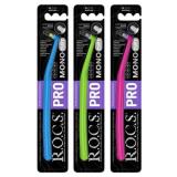Монопучковая зубная щетка R.O.C.S. PRO Mono, позволяет механически удалить бактериальный налёт в области зубодесневой борозды и межзубного пространства.