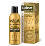 SOLNAT ШАМПУНЬ ДЛЯ ВОЛОС С КЕРАТИНОМ НИКОТИНОВАЯ КИСЛОТА 1% - предназначен для очищения волос по всей длине.