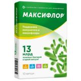 Пробиотик Максифлор - это базовый продукт в линейке, содержит 13 млрд бифидо- и лактобактерий, термофильный стрептококк + пребиотики. Сообща они решают основную задачу - поддерживают и восстанавливают баланс кишечной микрофлоры, способствуют устранению запоров и диареи, ослабляют побочные эффекты во время или после применения антибиотиков.