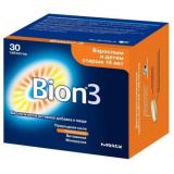 Взрослым и детям старше 14-ти лет по 1 таблетке в день во время еды, проглатывая целиком и запивая достаточным количеством воды. Продолжительность приема 1 месяц. При необходимости (особенно в зимний и весенний периоды) курс можно повторить. При приеме антибиотиков рекомендуется принимать ежедневно по 1 таблетке БИОН® 3 через 2 часа после приема антибиотиков, не раскусывая и запивая достаточным количеством воды (1 стакан). Не превышать рекомендованную дозу.Начинать прием БИОН® 3 необходимо одновременно с началом приема антибиотиков.Беременным и женщинам, планирующим беременность, не следует превышать рекомендуемую дозу.Передозировка