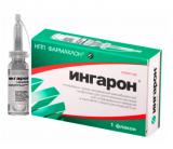 ИНГАРОН - рекомбинантный интерферон гамма человека, состоит из 144 аминокислотных остатков (а. о.), лишен первых трех а. о. Cys-Tyr-Cys, замененных на Met. Молекулярная масса 16,9 кДа. Получен микробиологическим синтезом в рекомбинантном штамме Escherichia coli и очищен колоночной хроматографией. Удельная противовирусная активность на клетках (фибробласты человека), инфицированных вирусом везикулярного стоматита, составляет 2*107 ЕД на мг белка. Интерферон гамма (иммунный интерферон) является важнейшим противовоспалительным цитокином, продуцентами которого в организме человека являются естественные киллерные клетки, CD4 Тh1 клетки и CD8 цитотоксические супрессорные клетки. Рецепторы к интерферону гамма имеют макрофаги, нейтрофилы, естественные киллерные клетки, цитотоксические Т-лимфоциты. Активирует эффекторные функции этих клеток, в частности их микробоцидностъ, цитотоксичность, продукцию ими цитокинов, супероксидных и нитрооксидных радикалов (тем самым вызывая гибель внутриклеточных паразитов). Интерферон гамма блокирует репликацию вирусных ДНК и РНК, синтез вирусных белков и сборку зрелых вирусных частиц. При этом вызывает цитотоксическое действие на вирус-инфицированные клетки.