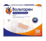 Вольтарен в виде пластыря трансдермального представляет собой основу с нанесенным адгезивным слоем, содержащим диклофенак, который обладает выраженными анальгетическим и противовоспалительным свойствами. В основе механизмов действия диклофенака лежит ингибирование синтеза простагландинов.
